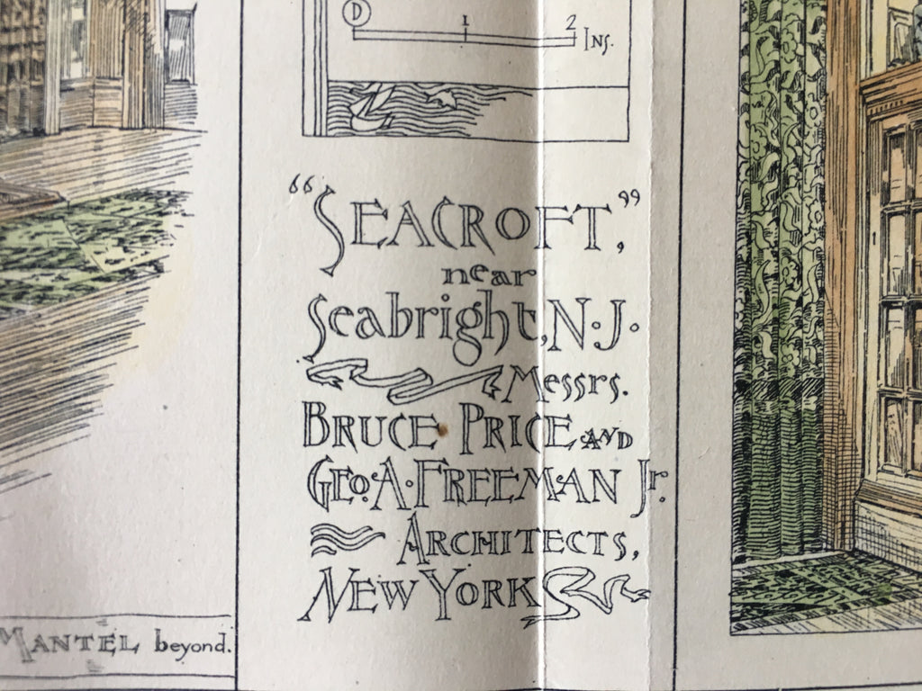 A Beautifully Detailed, Original Plan of 'Seacroft' near Seabright, New Jersey. ORIGINAL, HAND-COLORED. Bruce Price & George A Freeman, Architects. From the American Architect and Building News, January 6, 1883.
