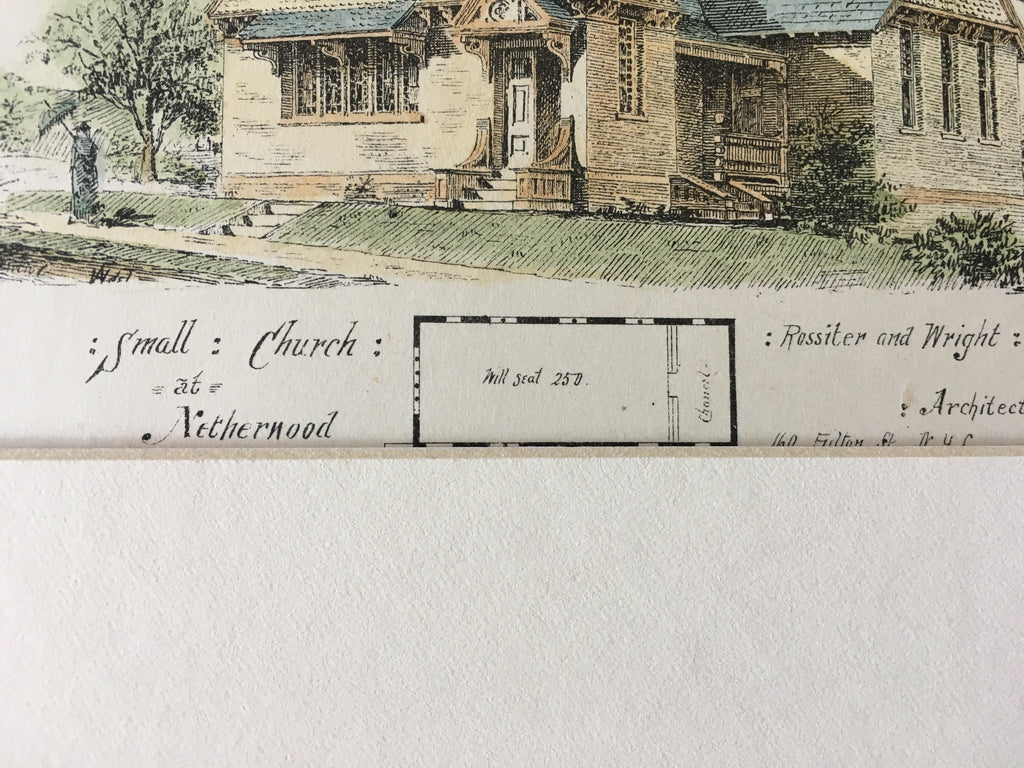 A Beautifully Detailed, Original Plan of the Small Church at Netherwood, New Jersey. HAND COLORED Rossiter & Wright, Architect(s). American Architect and Building News, December 4, 1880.