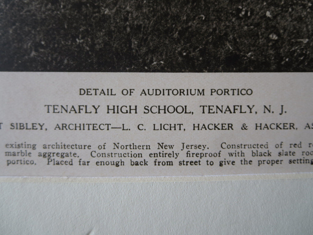 A Beautifully Detailed, Original Lithograph of the Tenafly High School, Auditorium Portico, Tenafly, New Jersey. EARLY PHOTOGRAPH. Ernest Sibley, Architect(s.) From the American Architect, March 14, 1923.