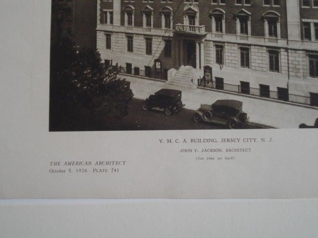 A Beautifully Detailed, Original Lithograph of the Y.M.C.A. Building(Street View) in Jersey City, N.J. EARLY PHOTOGRAPH. John F. Jackson, Architect, From the American Architect and Building News, October 5, 1926.