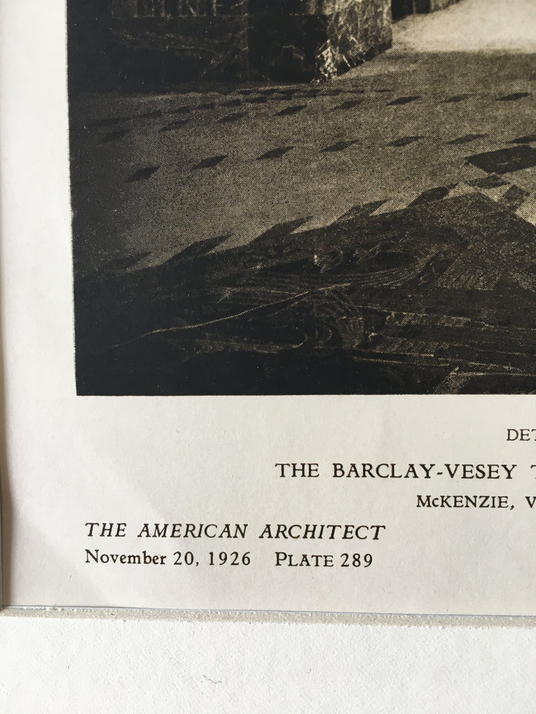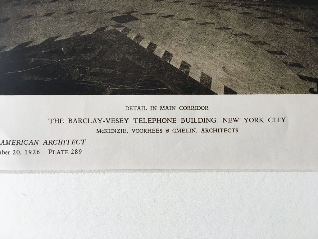 A Beautifully Detailed, Original Lithograph of the Barclay Vesey Telephone Building, Detail of Main Corridor, New York, NY. EARLY PHOTOGRAPH. McKenzie, Voorhees & Gmelin, Architect (s.) From the American Architect and Building News, November 20, 1925.