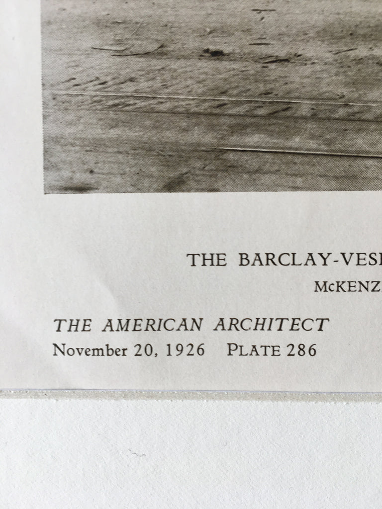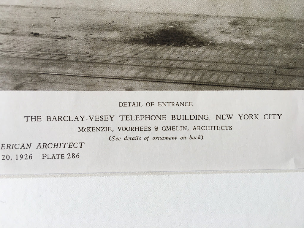 A Beautifully Detailed, Original Lithograph of the Barclay Vesey Telephone Building, Detail of Entrance, New York, NY. EARLY PHOTOGRAPH. McKenzie, Voorhees & Gmelin, Architect (s.) From the American Architect and Building News, November 20, 1925.