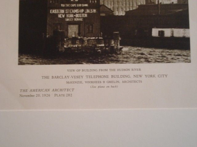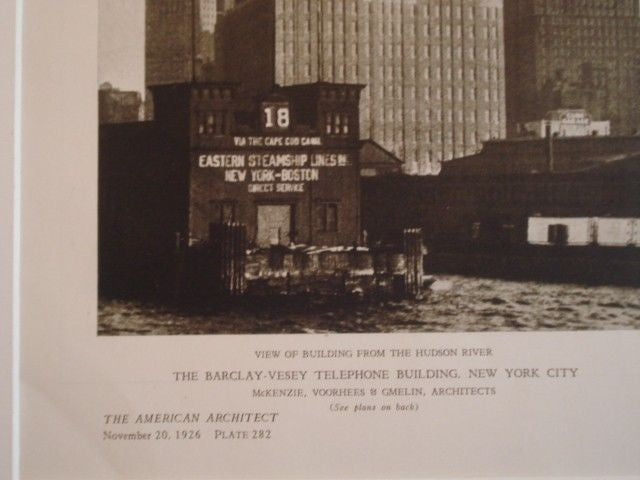 A Beautifully Detailed, Original Lithograph of the Barclay-Vesey Telephone Building in New York City EARLY PHOTOGRAPH. Kilham, Hopkins & Greeley, Architects, From the American Architect and Building News, November 20, 1926.