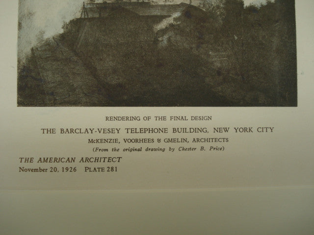 McKenzie, Voorhees & Gmelin, architect(s). From the American Architect and Building News, November 20, 1926. 13 by 8.5 inches. VG+ condition with light browning along the edges and some light crinkling.