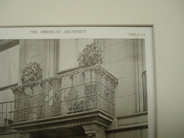 Messrs. Richardson, Barott & Richardson, architect(s). From the American Architect and Building News, June 30, 1909. 8.5 by 12 inches. VG+ condition with browning around the edges and light crinkling.