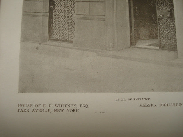 Entrance of the House of E. F. Whitney, Esq., New York, NY, 1909, Messrs. Richardson, Barott & Richardson