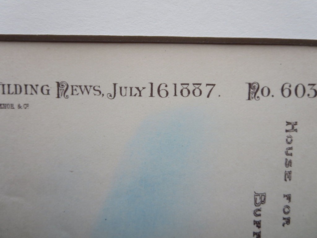 This picture is extremely hard to find, as the American Architect and Building News not only had a very small circulation during that time, but very few were actually preserved or colored as this has been. It measures 8.25 by 11.75 inches. Has a mat border and foam core backing (not attached to the picture). The whole plan measures approximately 12 by 16 inches (with mat border). Finely detailed and beautifully hand-colored. Shrink wrapped.