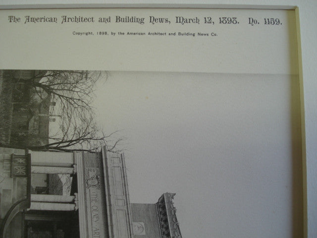 Corburn & Barnum, architect(s). From the American Architect and Building News, March 12, 1898. 13 by 9 inches. VG+ condition with browning around the edges and light crinkling.