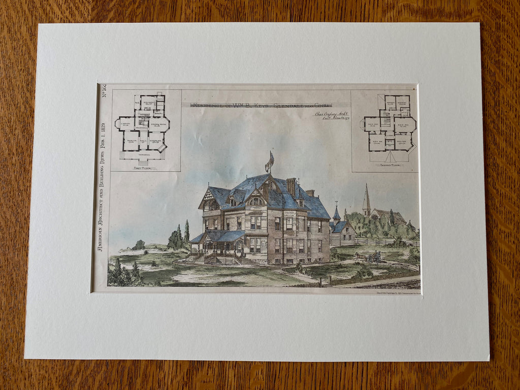William Keys Residence, Glendale, Cincinnati, OH, 1879, Original Hand Colored -