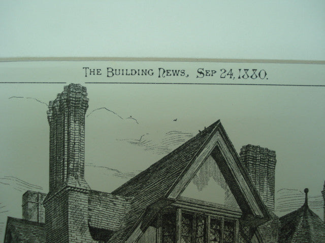 Isaac Barradale, architect(s). From the American Architect and Building News, September 24, 1880. 8.25 by 12 inches. VG+ condition with light browning along the edges and some light crinkling.