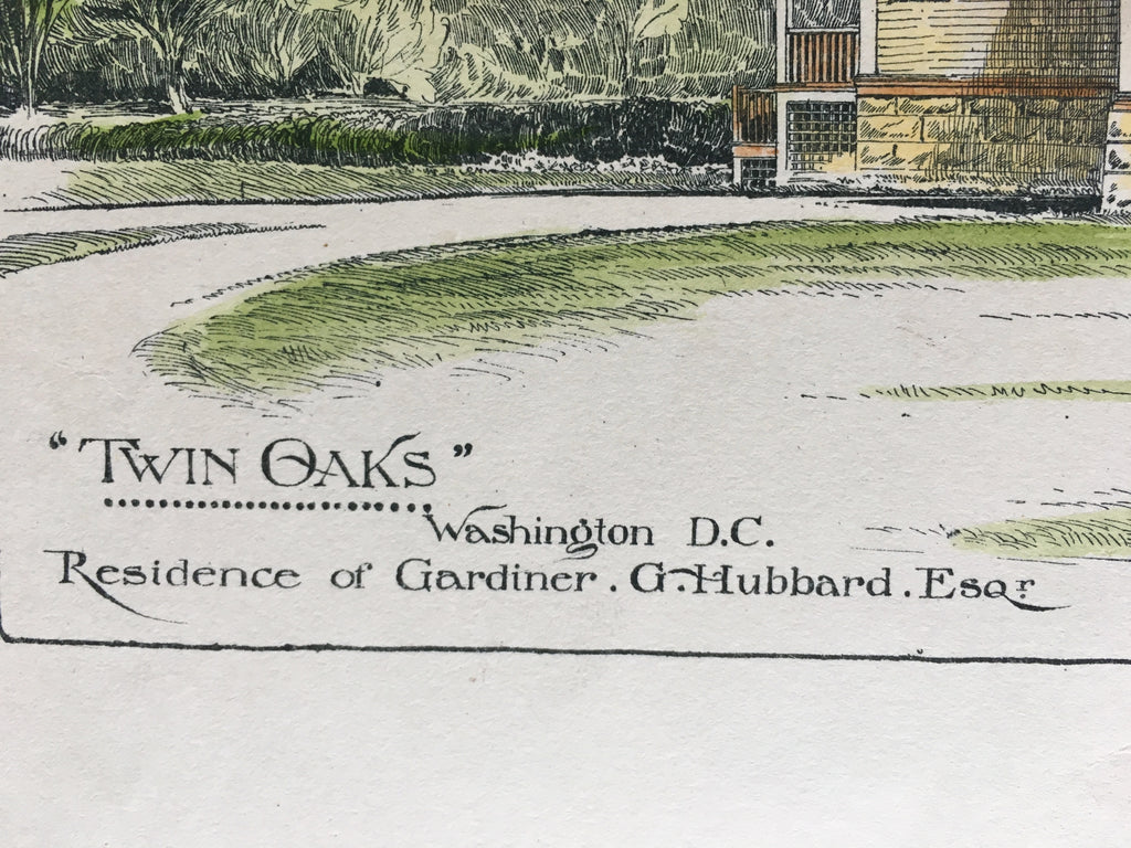 Twin Oaks, G G Hubbard Residence, Washington DC, 1888, Original Hand Colored -