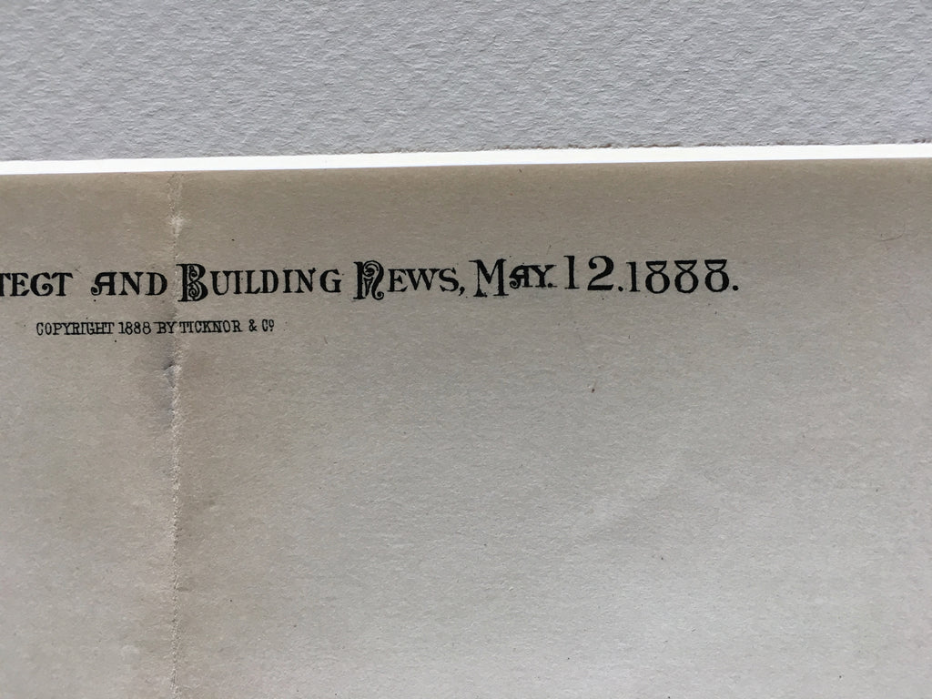 This picture is extremely hard to find, as the American Architect and Building News not only had a very small circulation during that time, but very few were actually preserved or colored as this has been. It measures approximately 16 by 12 inches and has a mat border and foam core backing (not attached to the picture). The whole plan measures approximately 20 by 16 inches (with mat border). Finely detailed and beautifully hand-colored. Shrink wrapped.