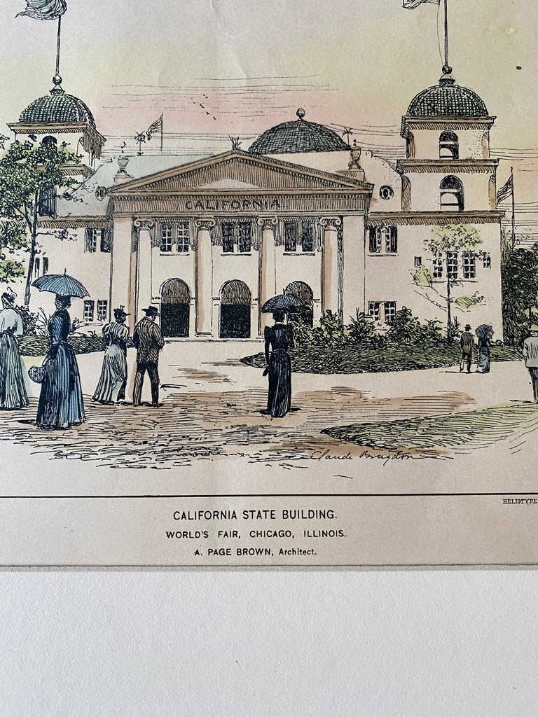 California State Building, Chicago Worlds Fair, IL, 1894, A Page Brown, Original Hand Colored
