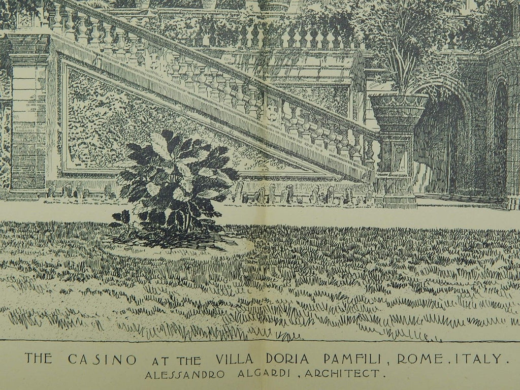 A Beautifully Detailed, Original Plan of the Casino at the Villa Doria Pamfili in Rome, Italy. Alessandro Algardi, Architect. From the American Architect and Building News, September 4, 1897.
