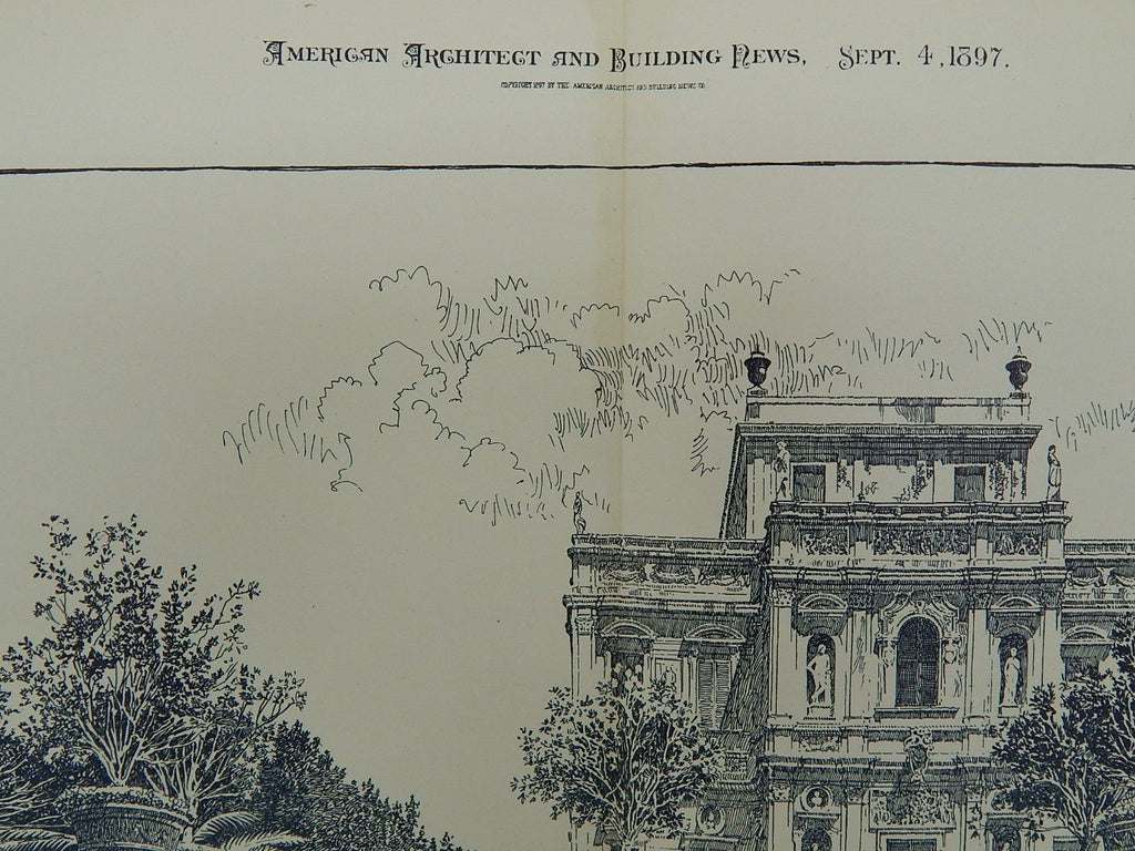 This picture is extremely hard to find, as the American Architect and Building News had a very small circulation during that time very few pictures such as this were actually preserved. It measures 13 by 17.75 inches. Has a mat border and foam core backing (not attached to the picture). The whole plan measures approximately 16 by 20 inches (with mat border). Finely detailed and shrink wrapped.