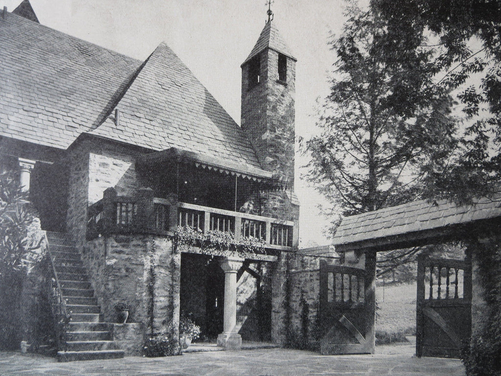 A Beautifully Detailed, Original Lithograph of the Residence of Dr. Walton Martin, Courtyard view, Cornwall, Connecticut. EARLY PHOTOGRAPH. Edward C. Dean, Architect(s.) From the American Architect, January 31, 1923. (House at Montclair, New Jersey on back side. Davis, McGrath & Kiessling, Architects.)
