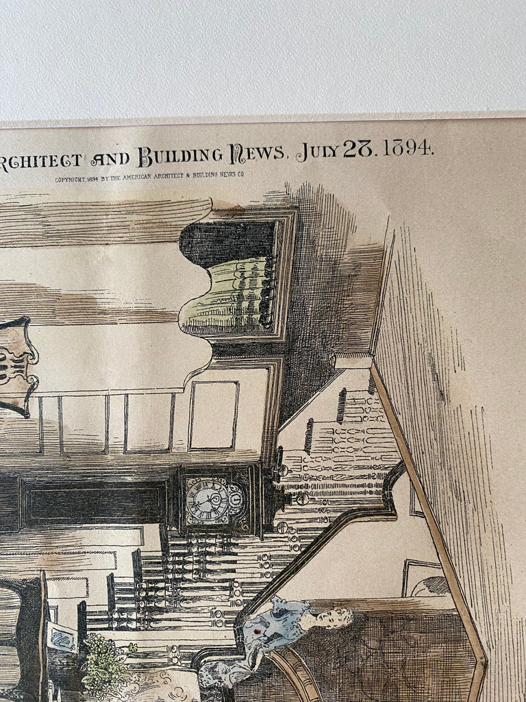 This picture is extremely hard to find, as the American Architect and Building News not only had a very small circulation during that time, but very few were actually preserved as this has been. It measures approximately 12 by 8 inches and has a mat border and foam core backing (not attached to the picture). The whole picture measures 16 by 12 inches (with border). Finely detailed and beautifully hand colored. Shrink wrapped.
