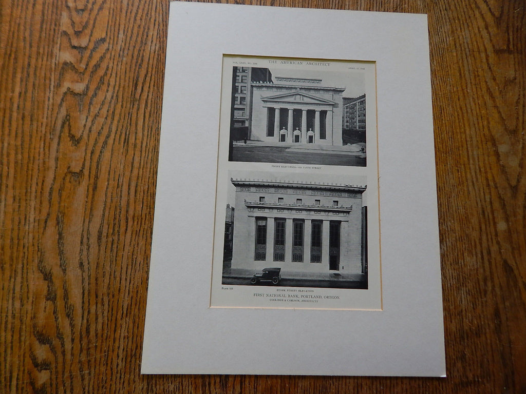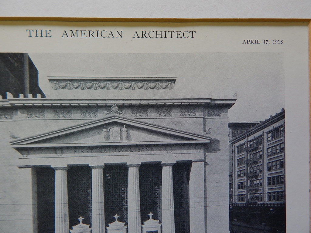 A Beautifully Detailed, Original Lithograph of First National Bank, Portland, Oregon, Fifth Street and Stark Street Elevations. EARLY PHOTOGRAPH. Coolidge & Carlson, Architect(s.) From the American Architect, April 17,1918.