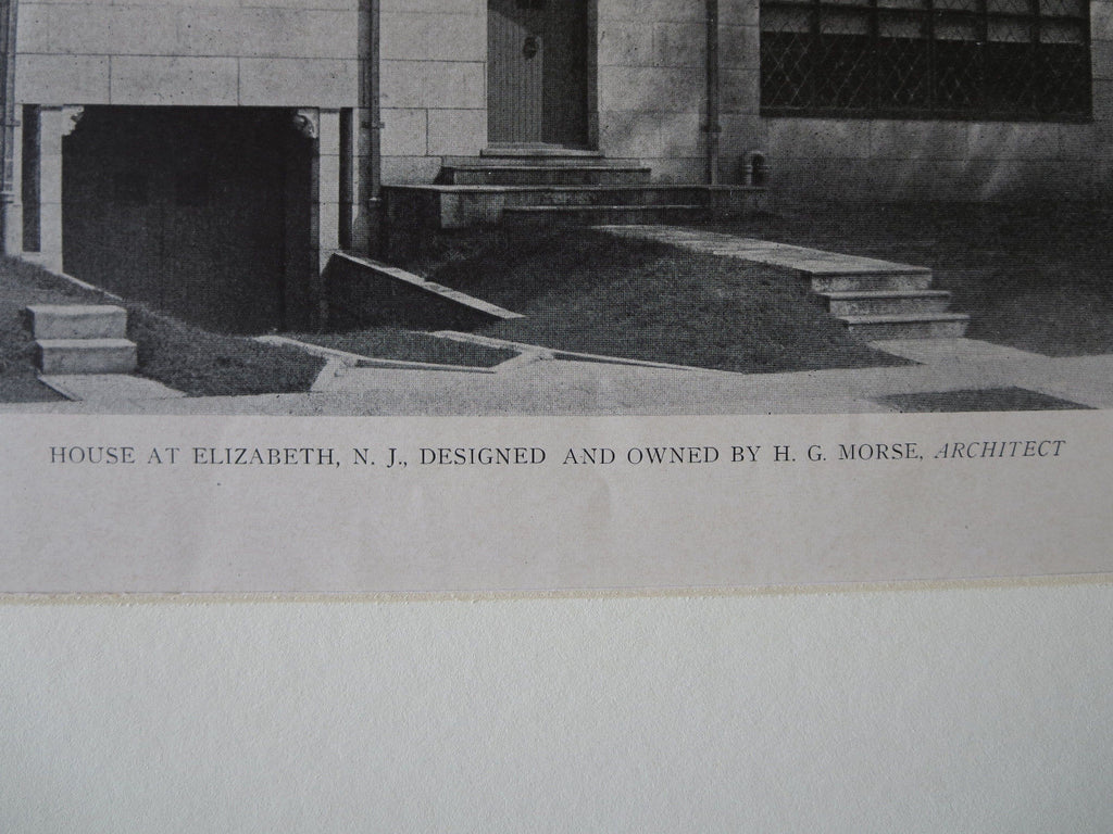 A Beautifully Detailed, Original Lithograph of the H. G. Morse House, Elizabeth, New Jersey. EARLY PHOTOGRAPH. H. G. Morse, Architect(s.) From the American Architect, August 17, 1921.