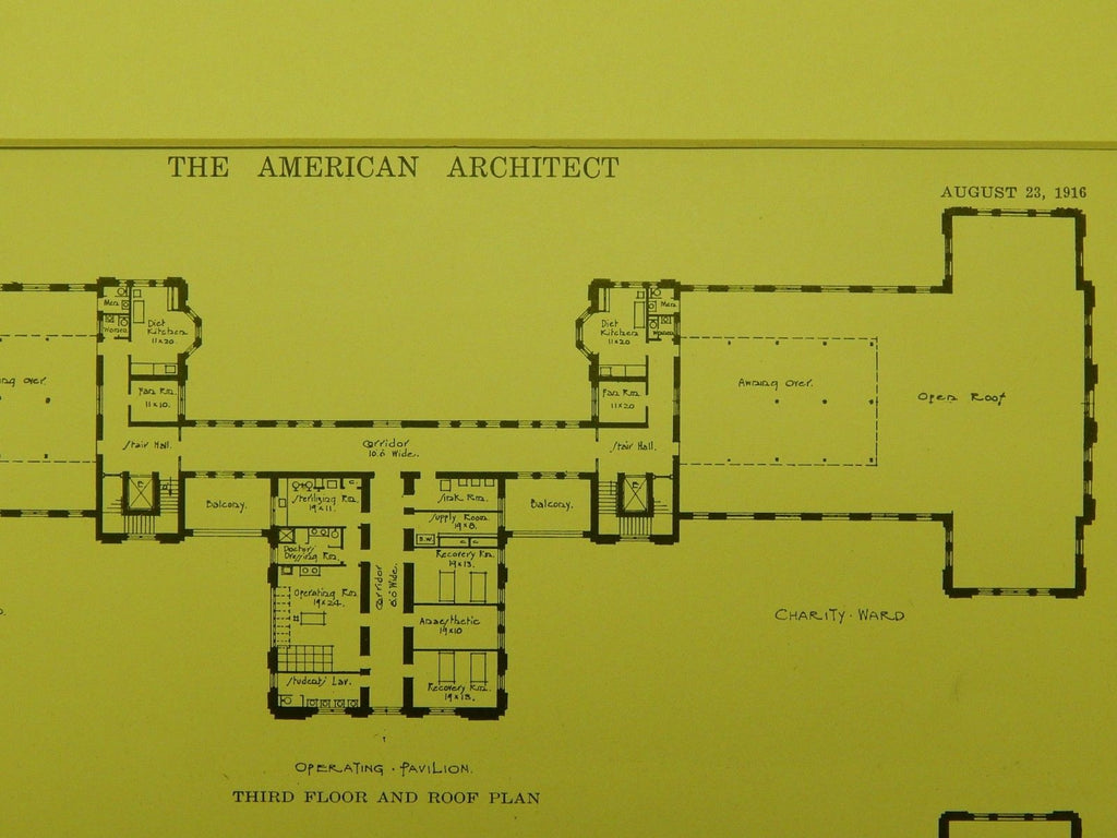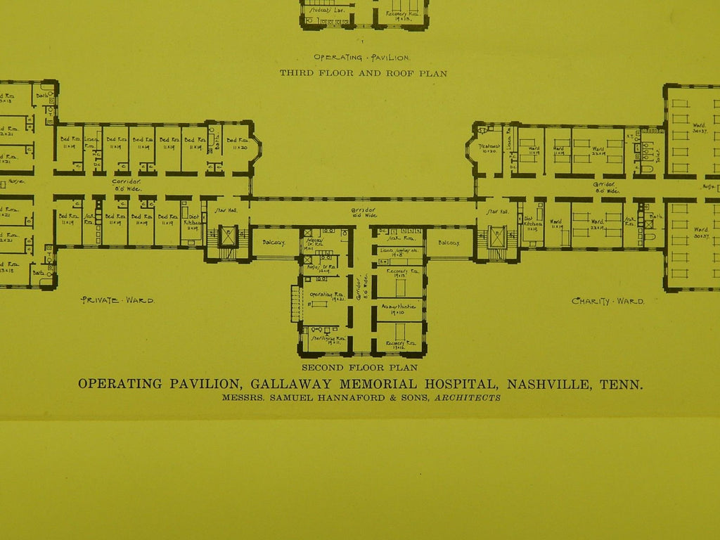 A Beautifully Detailed, Original Plan of the Operating Pavilion at Gallaway Memorial Hospital in Nashville, Tennessee. Samuel Hannaford & Sons, Architects. From the American Architect and Building News, August 23, 1916.