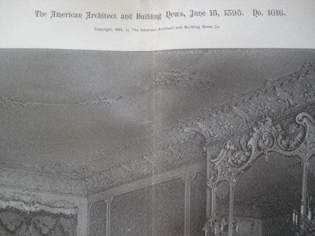 William Schickel & Co, architect(s). From the American Architect and Building News, June 15, 1895. 17.5 by 13.25 inches. VG+ condition with browning around the edges, a crease down the center, and light crinkling.
