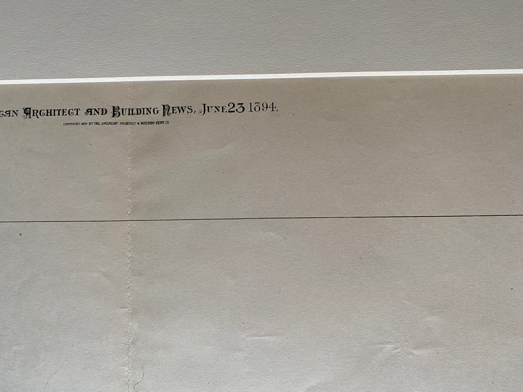 This picture is extremely hard to find, as the American Architect and Building News not only had a very small circulation during that time, but very few were actually preserved as this has been. It measures approximately 12 by 16 inches and has a mat border and foam core backing (not attached to the picture). The whole picture measures 16 by 20 inches (with border). Finely detailed and beautifully hand colored. Shrink wrapped.